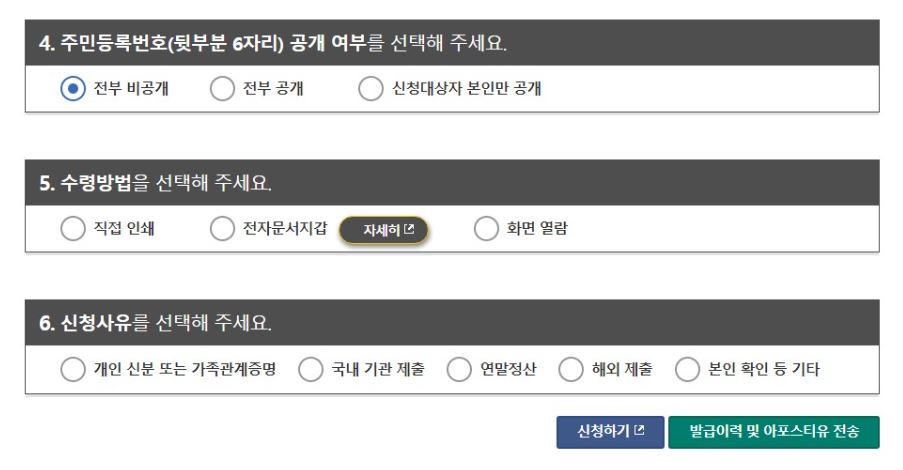 참고로 인터넷 발급 수수료는 무료이며, 인근 민원실 발급 수수료는 1,000원, 무인발급기 이용 수수료는 500원입니다. 수수료는 아깝지만 센터에 제품을 판매하는 시간과 노력을 고려해 인터넷 발급을 적극 추천합니다.