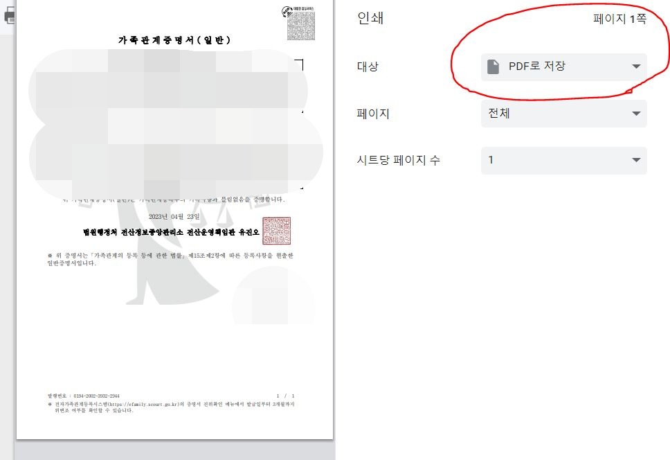 가족관계증명서를 인터넷발급과 동시에 PDF로 저장하여 필요할 때 뽑아써요~